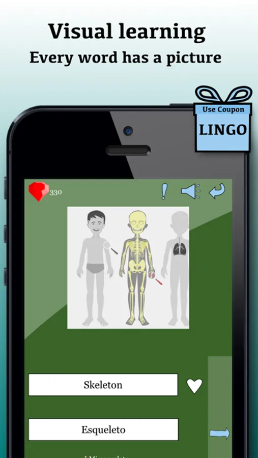 Learn the names of everyday items while learning French, Spanish, English or Turkish with this FREE download. Use the "LINGO" coupon code when you start the app to really get you started.