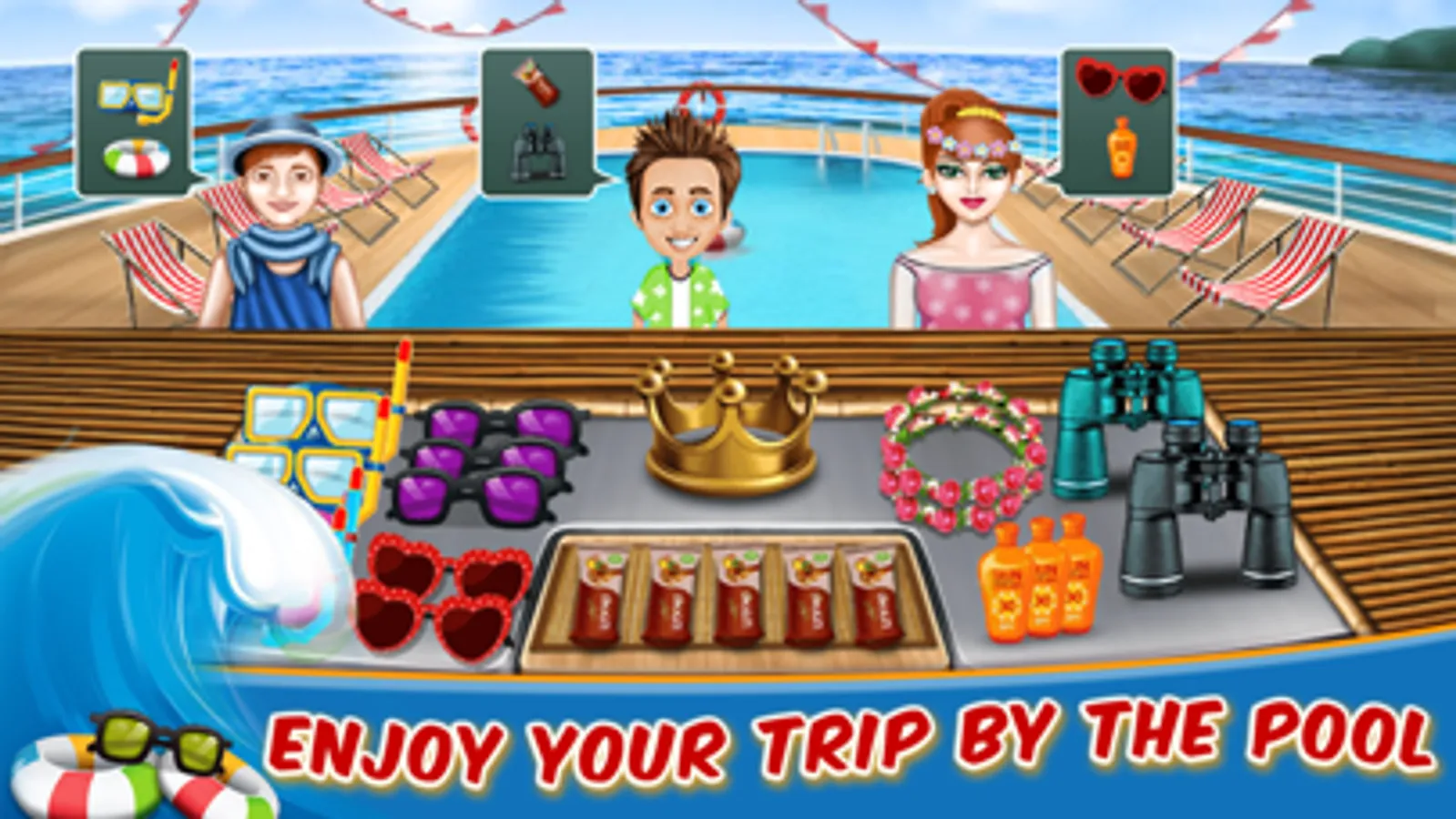 Swimming pool game : in this part of game you have to control over swimming pool of ship where a lot of travellers are waiting to use your swimming pool on you cruise ship and they need accessories to swim with. To make them happy and earn well provide them with all the accessories they need before entering into this swimming pool game.