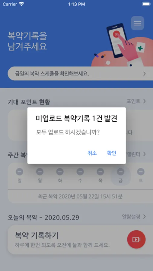 그 중 동영상 녹화 방식 복약 기록의 경우 녹화된 자료를 내 기기에 저장하거나, 즉시 또는 필요 시 웹 서버에 업로드 할 수 있으며,