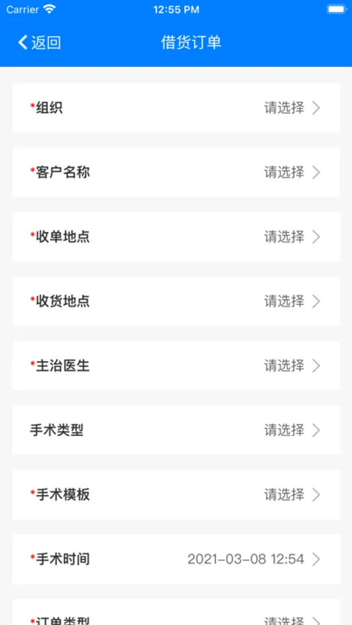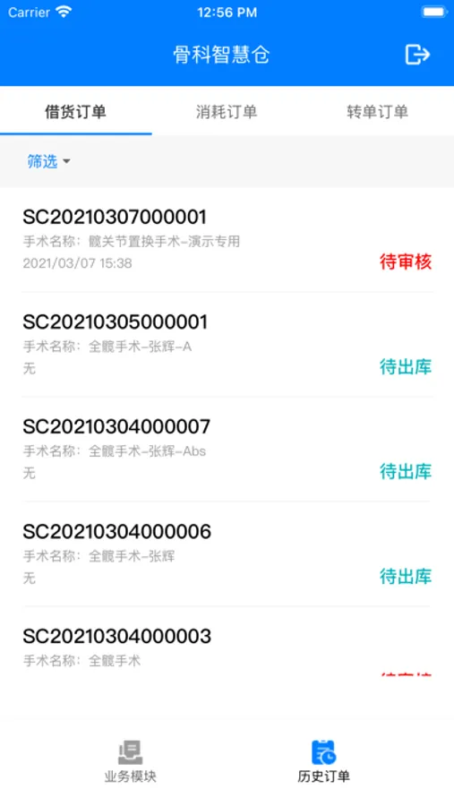 APP主要功能包括借货订单、消耗确认、自助下单以及历史订单等功能,旨在提升骨科业务员工作效率,从而实现骨科供应链数字化、移动化以及智能化。