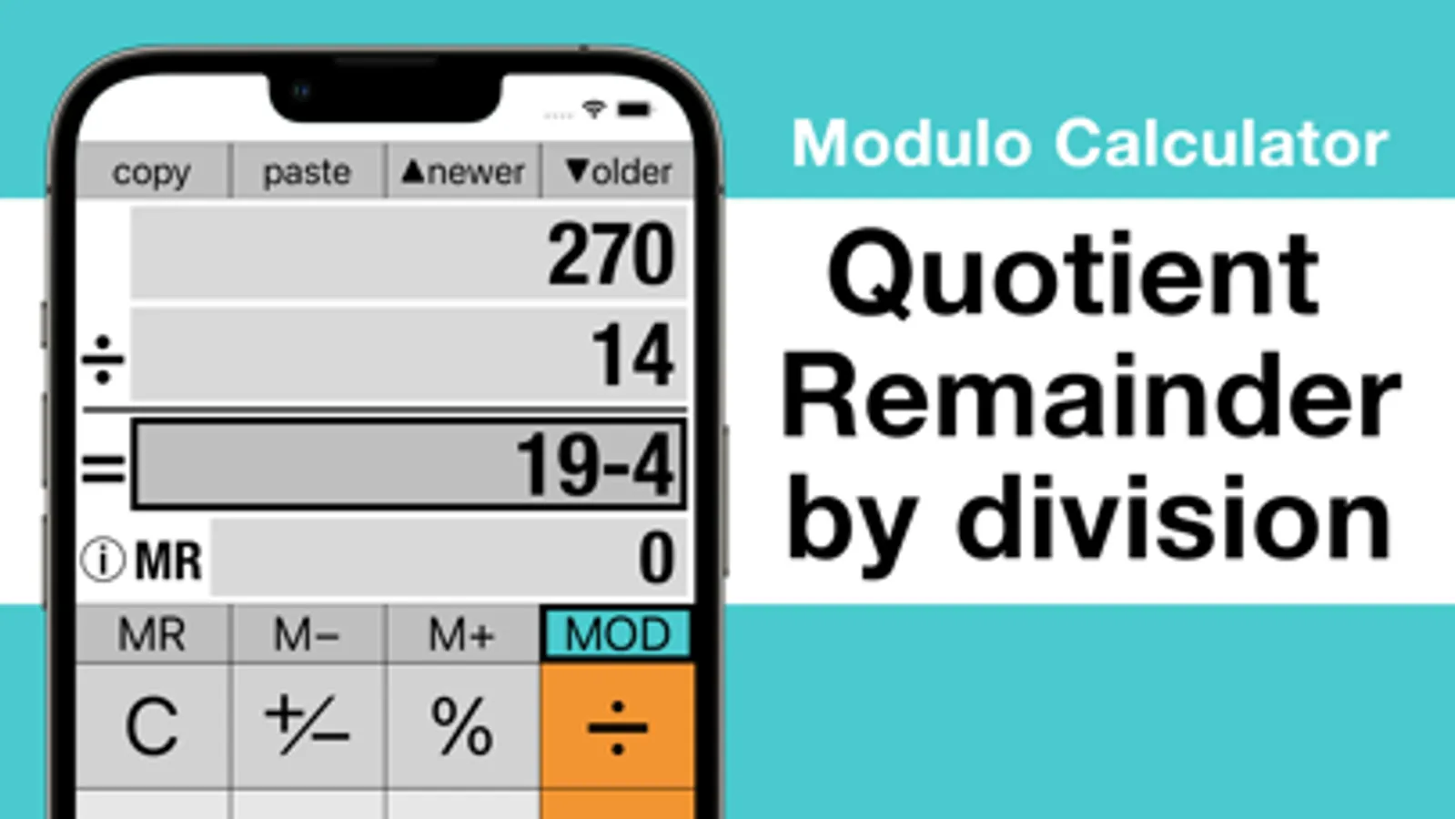 Modulo Calculator has a remainder calculation function that is convenient for dispensing work in pharmacies, shipping work in distribution warehouses and calculation of the number of patterns and the number of remaining stitches in knitting, etc.
