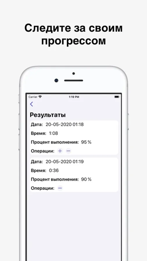 - Отслеживайте свой прогресс повышая процент правильного выполнения "столбиков"!