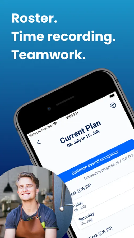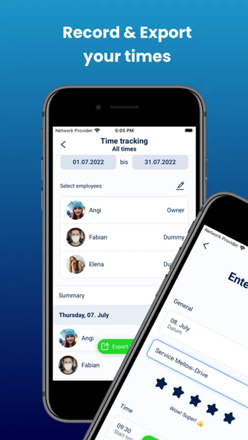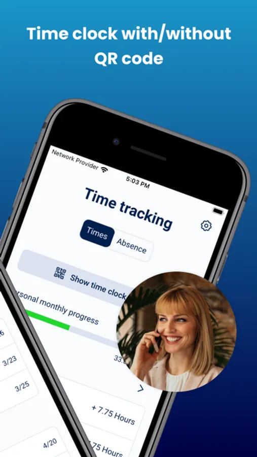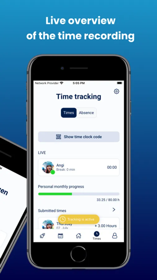 - Legally compliant time recording via (QR code) time clock or manual entry