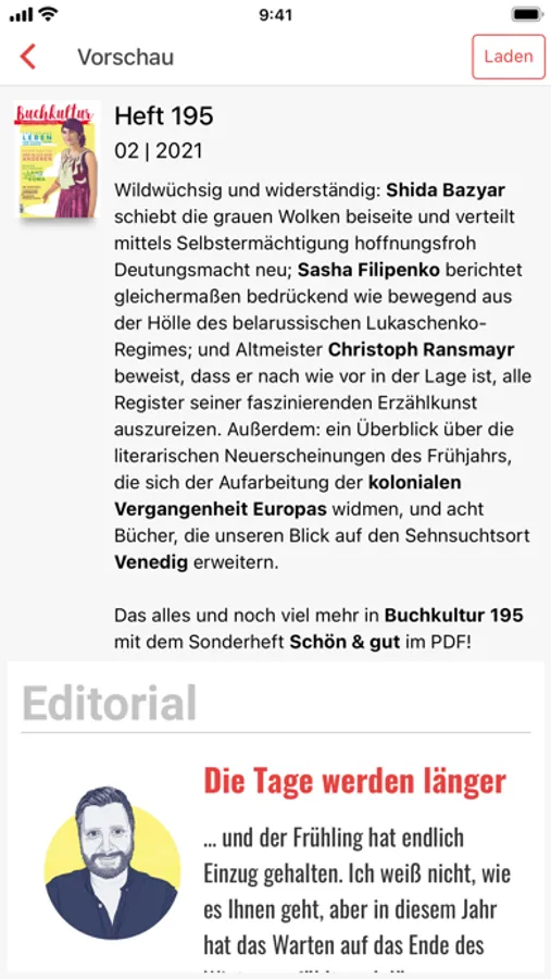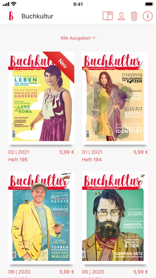Der Download der App ist kostenfrei. In der App können Sie Einzelausgaben oder Abonnements kaufen.