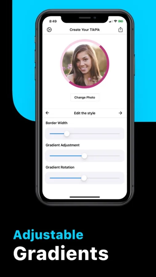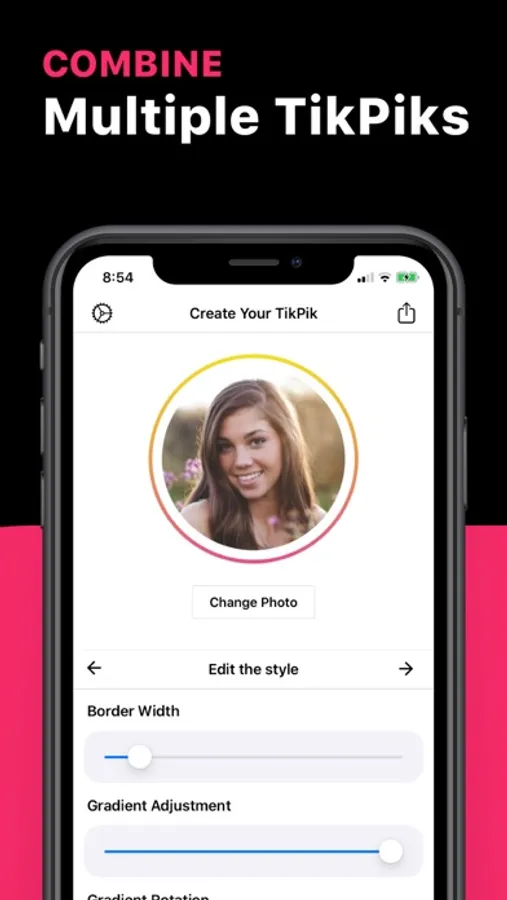 TikPik allows you to add a creative border around an image. For example, add a creative ring around you TikTok profile. TikPik allows you to choose from several colors and gradients with several adjustments. You can even use a saved TikPik within a TikPik to create unique layered borders. NOTE: TikPik is not affiliated with or endorsed by TikTok.