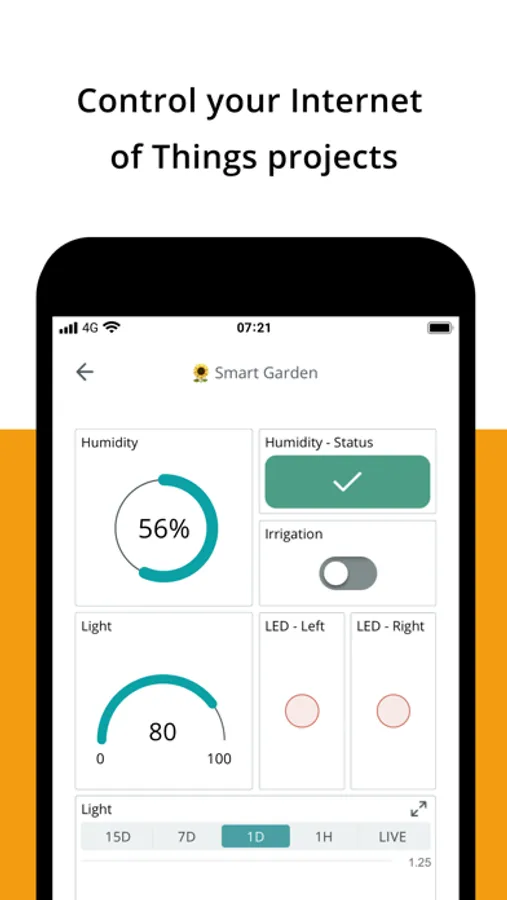 - In the field: you can read the data from your soil sensors or start your irrigation system directly from anywhere.