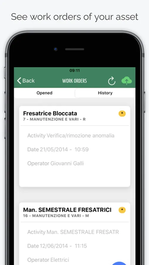 You can specify parts, anomalies, activities of a maintenance operationd ans also record measurements to a specific asset.