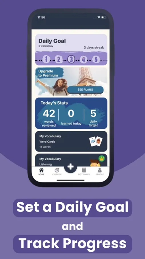 - Advanced statistics: after each exercise, you’ll see your daily progress with a detailed report of all words that you studied.