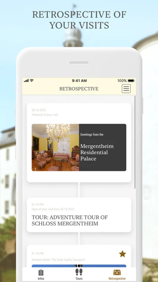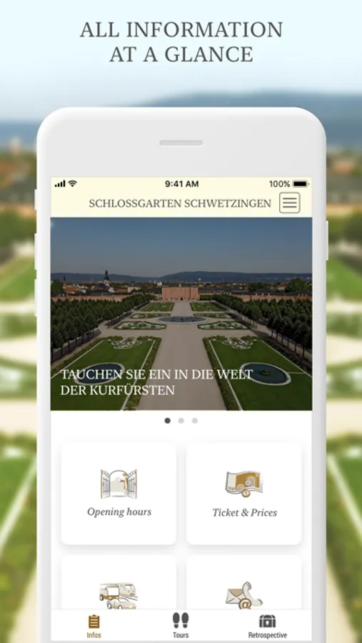 Experience the monuments of the State Palaces and Gardens of Baden-Württemberg with our digital guide: Should it be a uniquely preserved monastery town, the UNESCO World Heritage Maulbronn Monastery? Or the famous palace garden in Schwetzingen and the important Celtic town on the Heuneburg? This app is the ideal companion for your visit. Impressive pictures, videos and audios bring the monuments to life and allow a look behind the scenes. We warmly welcome you!