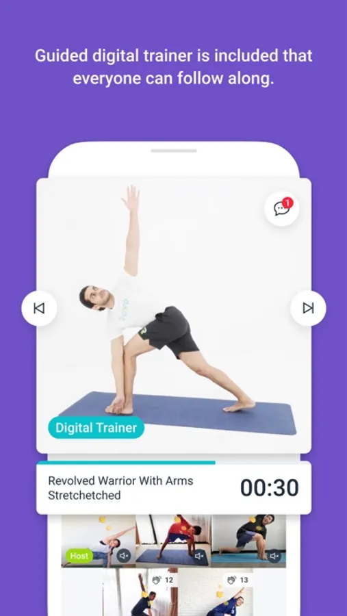 Easily host fitness & yoga workout sessions with your friends. They can join from anywhere in the world from the comfort of their homes.