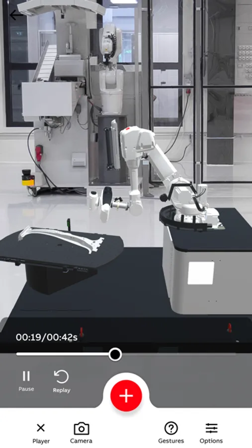 RobotStudio® AR Viewer is an Augmented Reality application for smartphones and tablets to discover and visualize in the real environment or in 3D, ABB robots and robotic solutions created in the RobotStudio® desktop app. With the RobotStudio AR Viewer app, you get an exact copy of the ABB robots and robotic solutions in real size and with the animation accurately reflected.