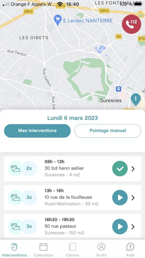 Vous consultez le lieu de vos prochaines interventions, contactez votre agence d’un simple clic, gagnez du temps sans vous perdre grâce à nos plans et aux informations fournies dans les fiches de vos particuliers-employeurs.