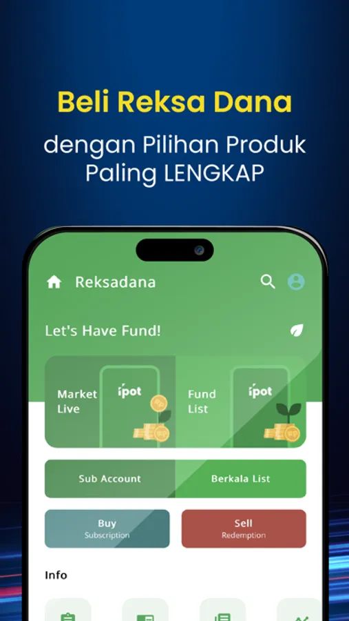 Fitur quick link dapat membantu mengakses fitur favoritmu di IPOT. Kamu juga bisa menyesuaikan preferensi tampilan dengan adanya pilihan dark mode.
