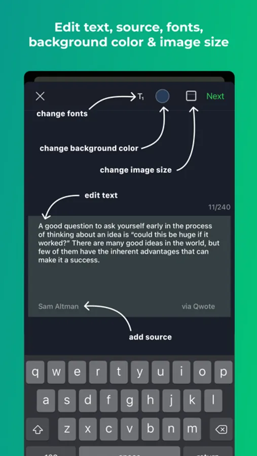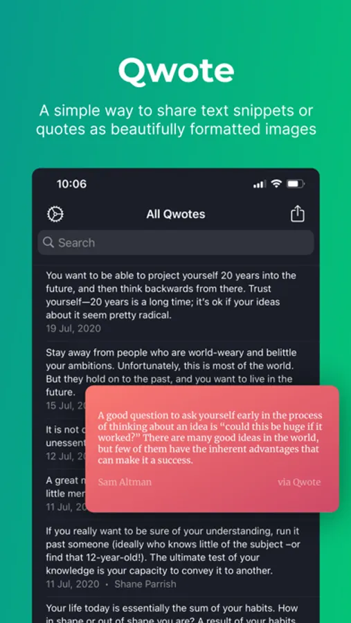Qwote is a quick way to share text snippets or quotes as beautifully formatted images.
