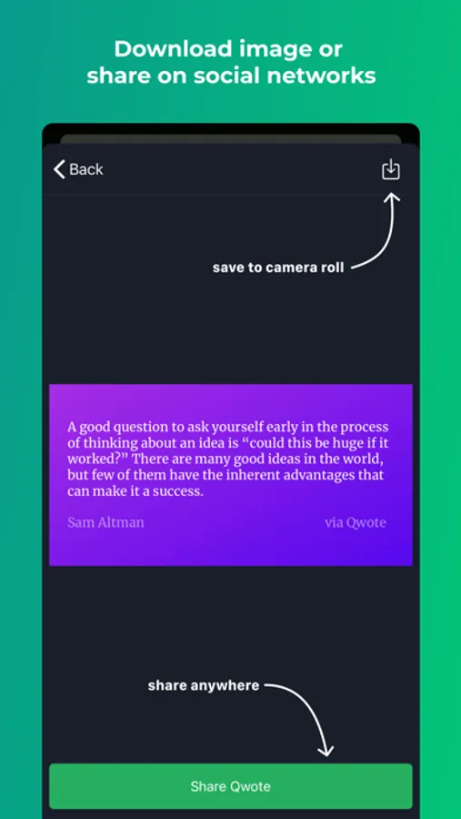 - Then click 'Share Qwote' to share your beautifully formatted card on social networks