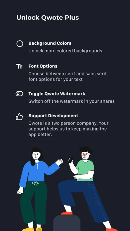 With the 'Qwote Plus' feature, you will be able to change fonts & background colors. You can also remove the Qwote watermark to have a clean minimal card.