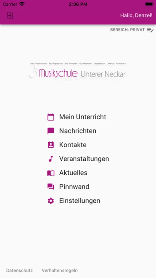 Die App ist also Dein All-in-one-Paket mit sämtlichen Informationen zur Musikschule Unterer Neckar. Schüler, Eltern, Lehrkräfte und die Musikschule können einfach und schnell miteinander kommunizieren und das Beste: Die App ist DSGVO-konform!