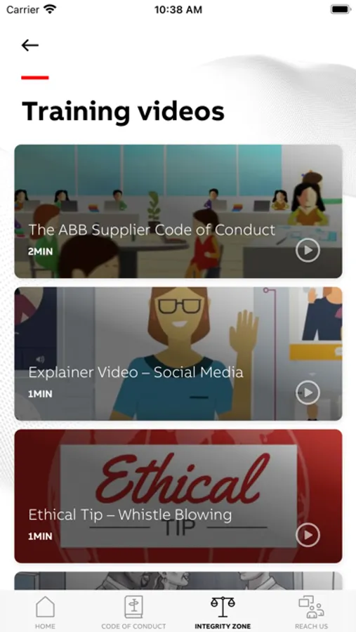 With the "ABB Code of Conduct" mobile application, you will have immediate access to: