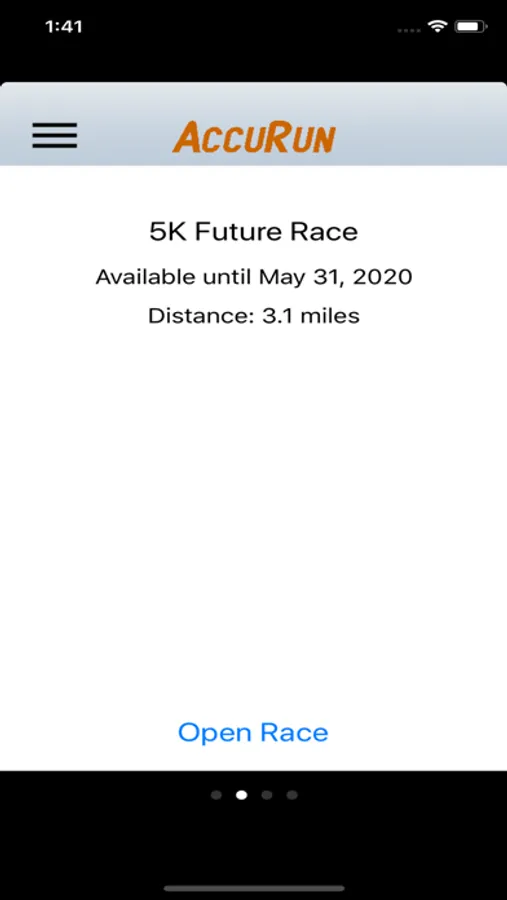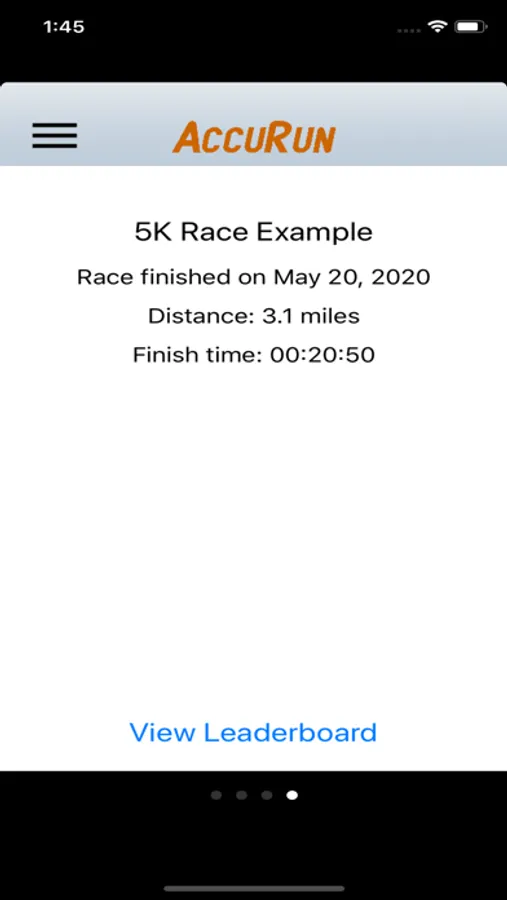 The AccuRun Virtual Race Assistant allows users to register for available races, create an account, participate in races and review the race leaderboard.