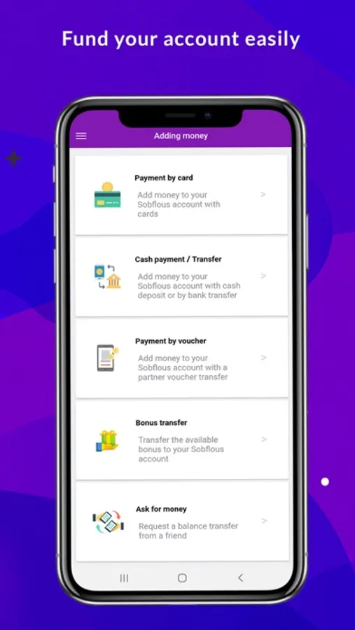 Sobflous is a virtual wallet that allows you to pay, buy and receive money in complete security.