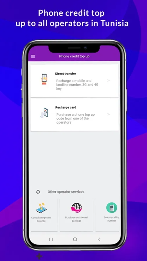 • Top up your mobile phone line, landline and internet key in Tunisia by direct transfers or by recharge codes.