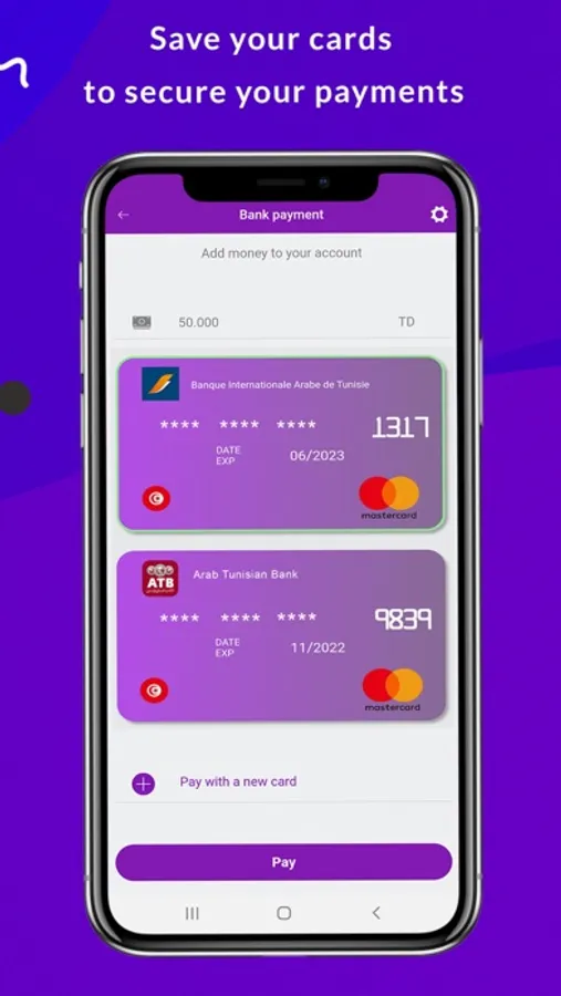 • Save your bank cards or postal cards on Sobflous for easy, fast and secure payments.
