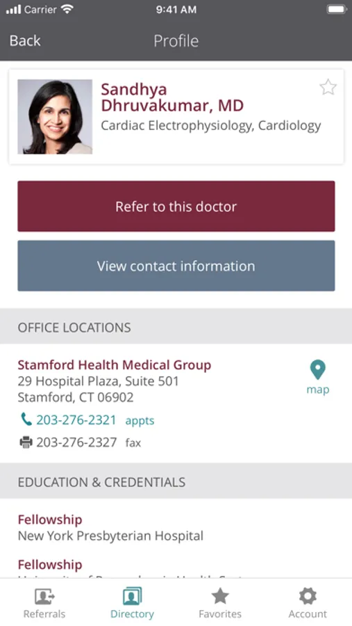 The app has been designed so that providers and their staff can search quickly through a comprehensive directory of Stamford Health physicians. Searches can be tailored to a variety of factors including location, specialty and clinical interest.