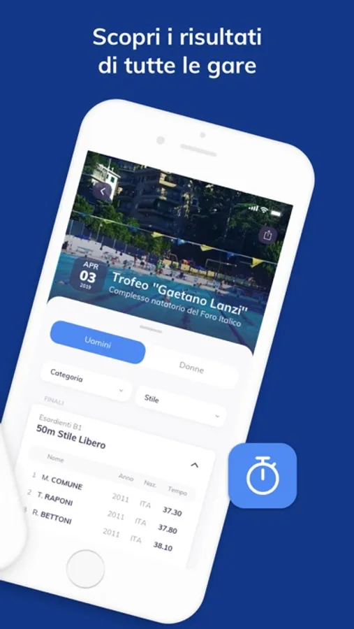L'app fornisce in tempo reale i risultati delle gare di nuoto, salvamento e master. Dopo una