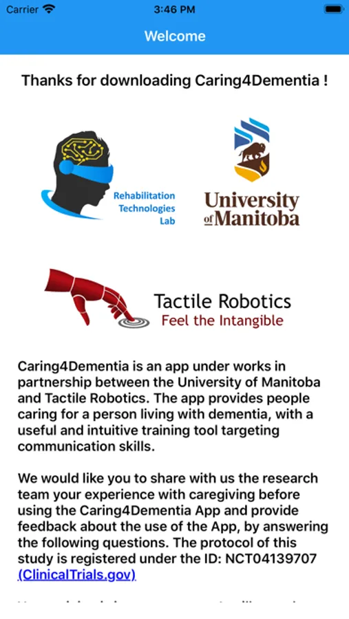 Caring4Dementia is an app underworks in partnership between Tactile Robotics Ltd. and researchers at the University of Manitoba. The app provides people caring for a person living with dementia, with a useful and intuitive training tool targeting communication skills.