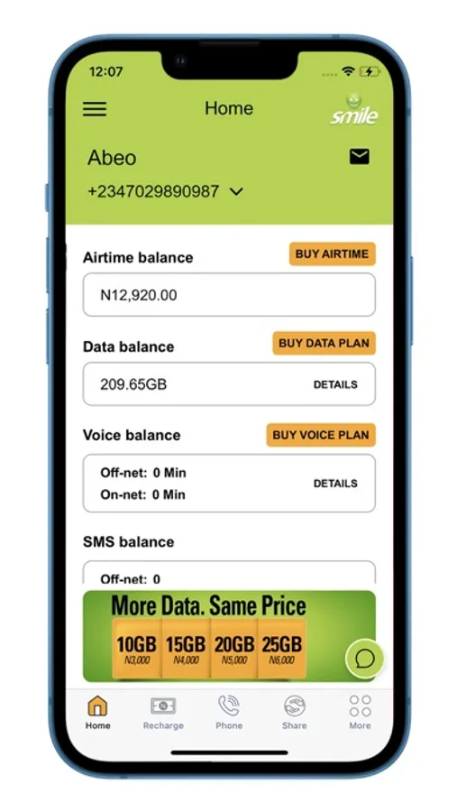 MySmile App with VOICE is here! Make and receive calls and SMSs using your MySmile App to/from any number in the world using your MySmile App. Activate your SmileNumber for voice by following the prompts on the App and you’ll be ready to make/receive calls. You can still Recharge Data, Voice, and Airtime, Check Balances, Redeem Airtime Vouchers, and Share Data and Airtime whenever you want. MySmile App from Smile for all your service needs.