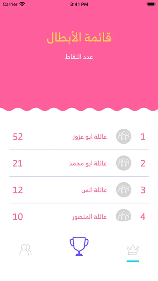 * تقدر تشوف النتايج لعائلتك والعوائل الثانية بقائمة الأبطال بالصفحة الرئيسية للعبة