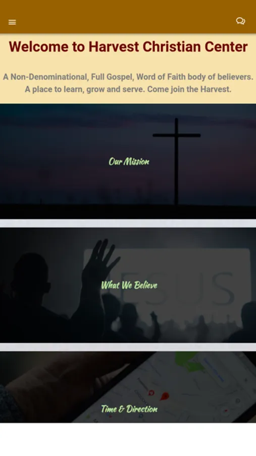 Find easy access to information about Harvest Christian Center useful resources such as maps and directions, links to all of our social media channels, and get push notifications so you’re always up-to-date.