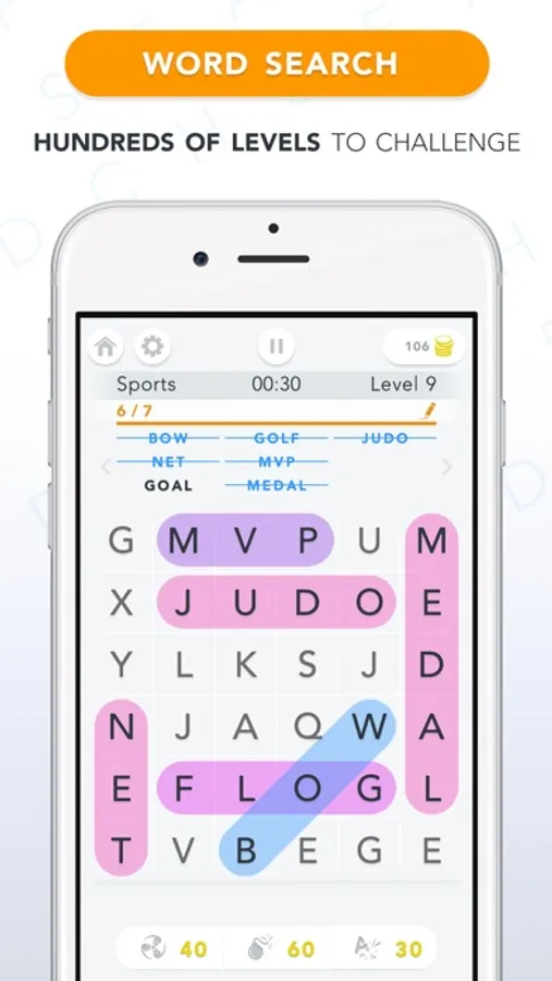 You can either test your skills and level up in campaign or relax connecting letters and finding words in classic mode. If you feel up-to the challenge, try to beat the clock in the daily challenge and win rewards. Got stuck? Use power-ups to help you find the missing words.