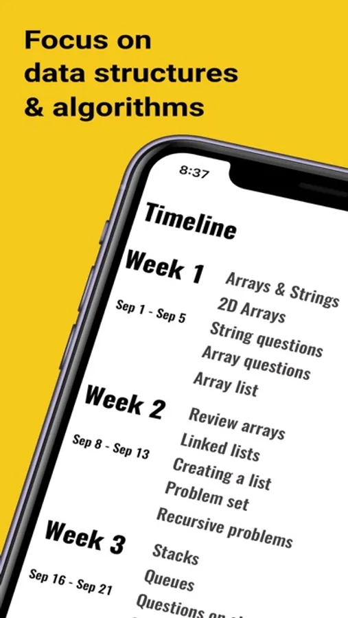 Create a timeline that will get you focused on computer science related topics that you really want to stick during your period studying. Whether you're a student, self-taught developer, or seasoned programmer, you can set a timeframe that will help you stay on track with studying and practicing data structures.