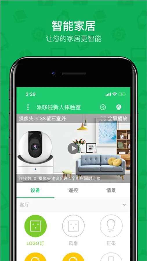 派哆啦智能家居无需变动现有电路、更换现有电器、破坏现有装修,通过手机即可远程控制门锁、窗、灯、各类家电。自定义多模式预设,高度节能安防,尽享温馨舒适智慧生活。