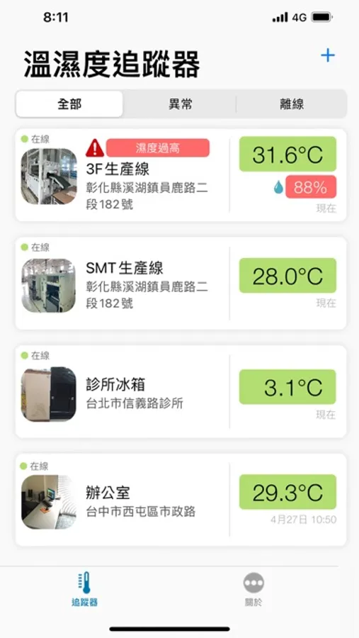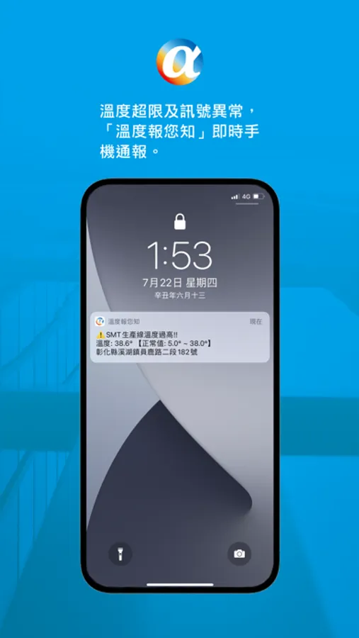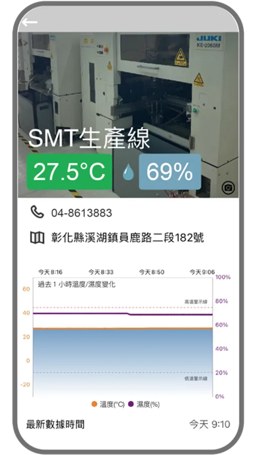 追蹤器的溫度感知器可即時偵測設備溫度狀況,手機即時通報、監測回傳數值、查詢歷史記錄,提醒業者異常查修,採取因應措施,避免財產損失。