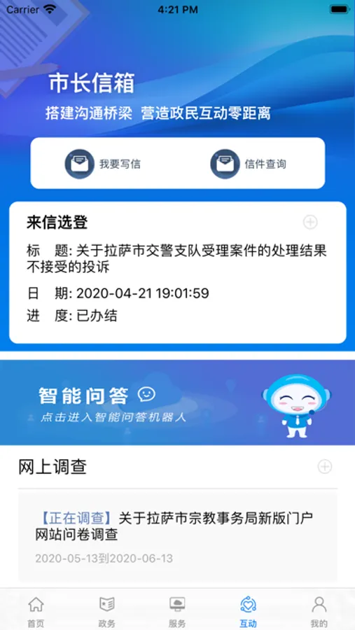 中国拉萨app是一站式“互联网”+市民服务平台,个人用户和企业用户凭借账号登录,可轻松查看拉萨当前最新政务动态;办理拉萨市各类政务服务;享有各类公共服务和便民服务。通过市长信箱,搭建沟通桥梁,实现政民互动零距离。
