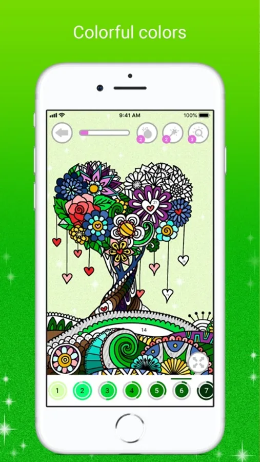 - You need to follow the numbers in coloring area and a special color palette suggests you what color each number corresponds to;