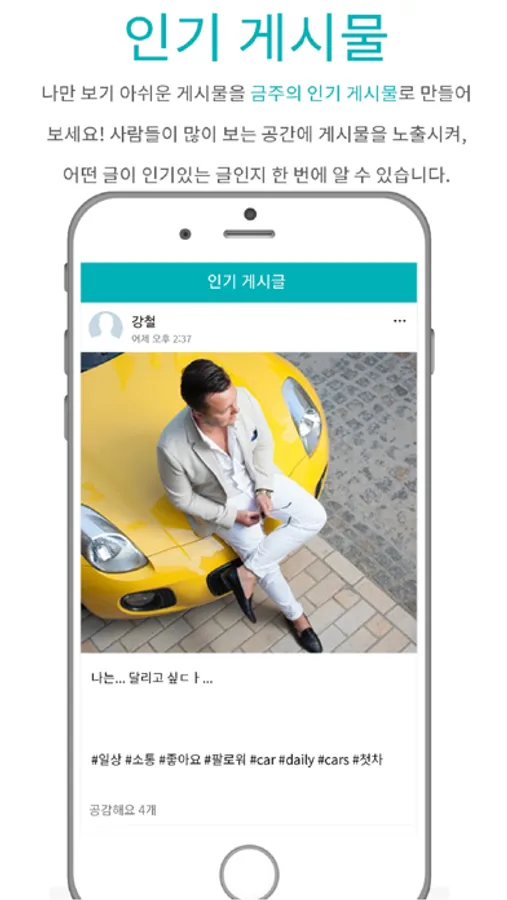 나만 보기 아쉬운 게시물을 금주의 인기 게시물로 만들어 보세요! 사람들이 많이 보는 공간에 게시물을 노출시켜, 어떤 글이 인기있는 글인지 한 번에 알 수 있습니다.