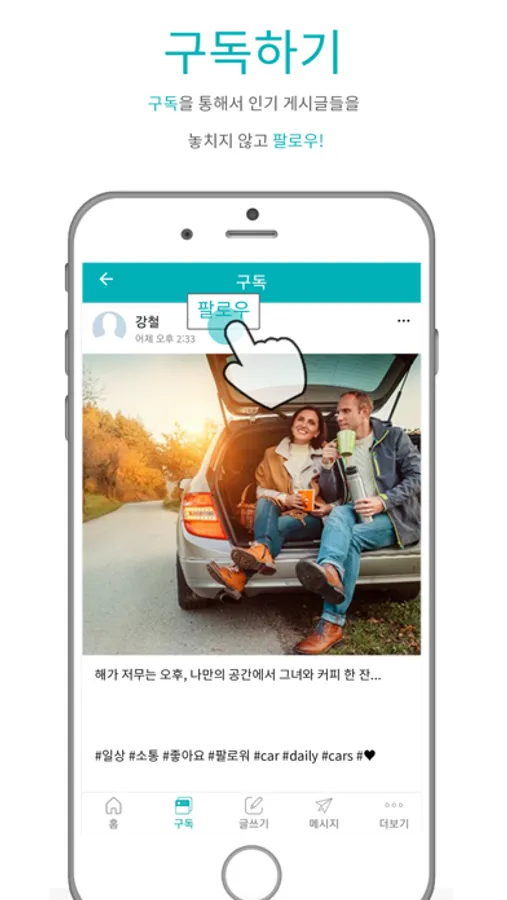 마음에 드는 게시물에 좋아요와 댓글을 통해 회원님들 간 활발한 소통을 해보세요! 다음 게시물이 궁금한 회원님을 팔로우하여 빠르게 다른 회원의 게시물을 만나볼 수 있습니다.