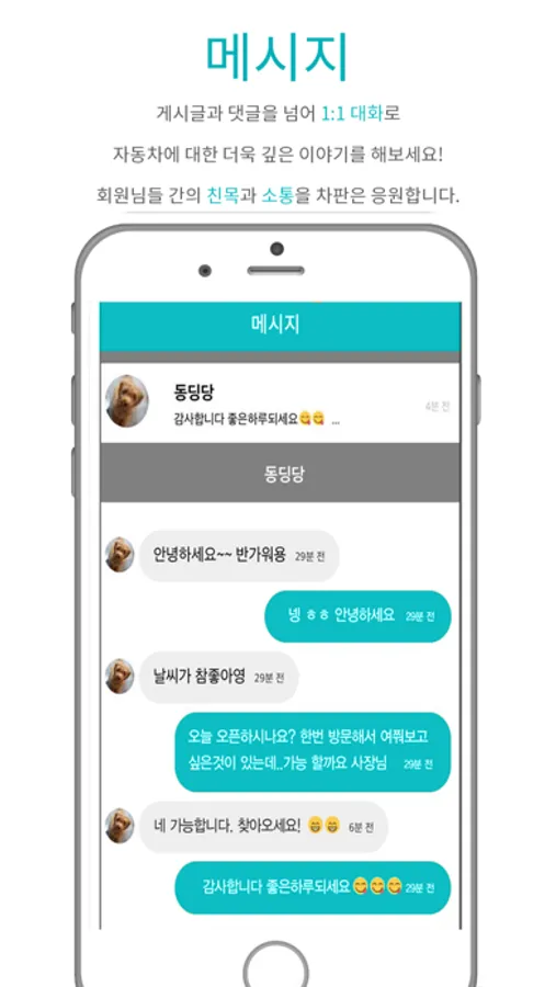 게시글과 댓글을 넘어 1:1 대화로 자동차에 대한 더욱 깊은 이야기를 해보세요! 회원님들 간의 친목과 소통을 차 판은 응원합니다.