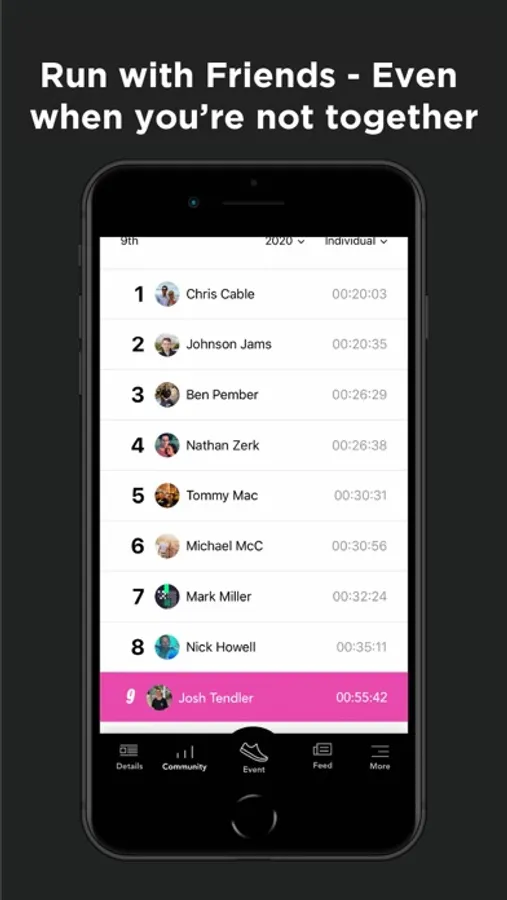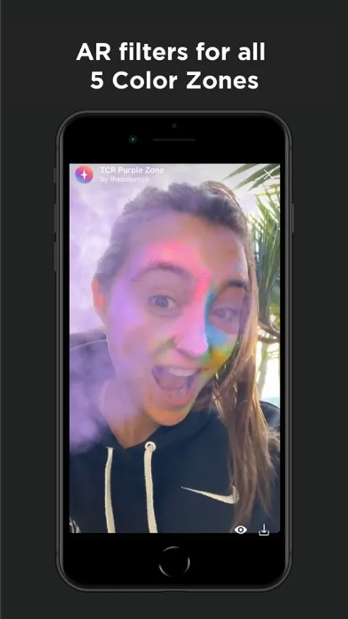 5 VIRTUAL REALITY COLOR ZONES: Our augmented reality camera applies a new color to your face for every kilometer of the event.
