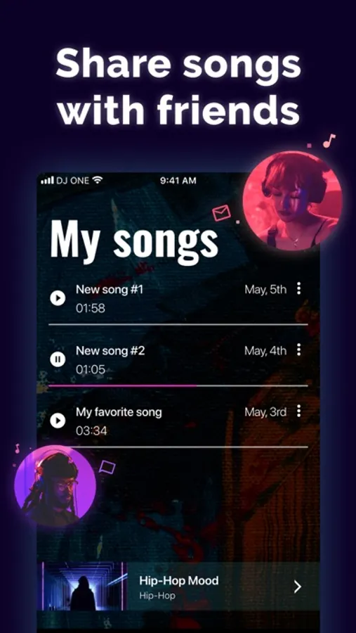 - Share your music with family, friends, and even sponsors and become a cool DJ!