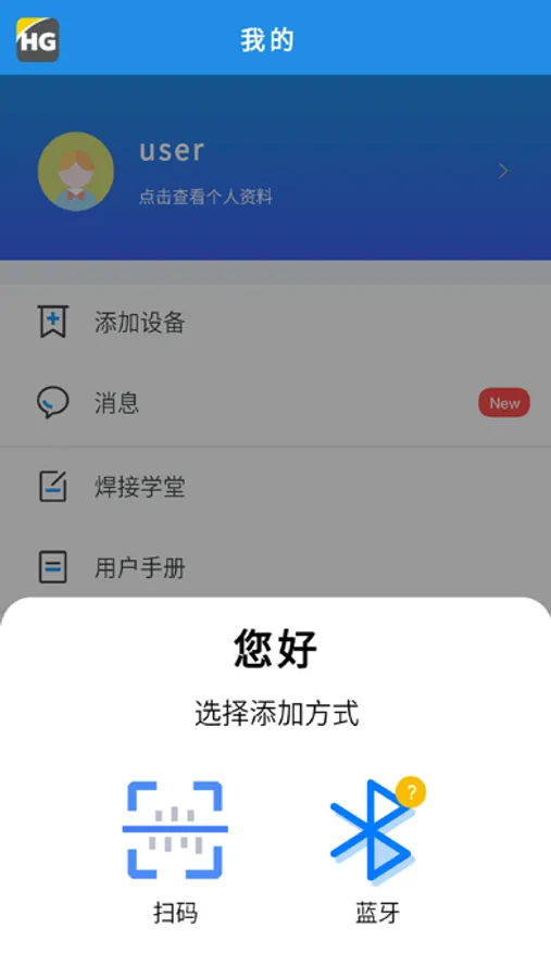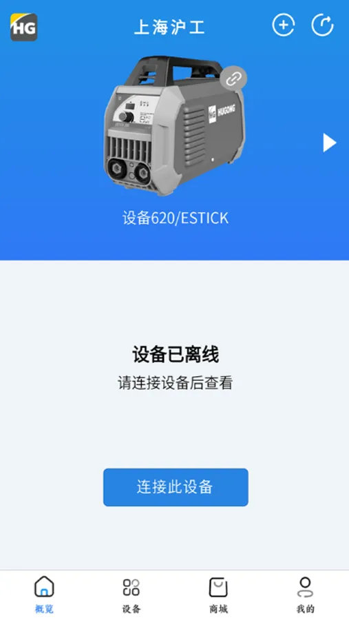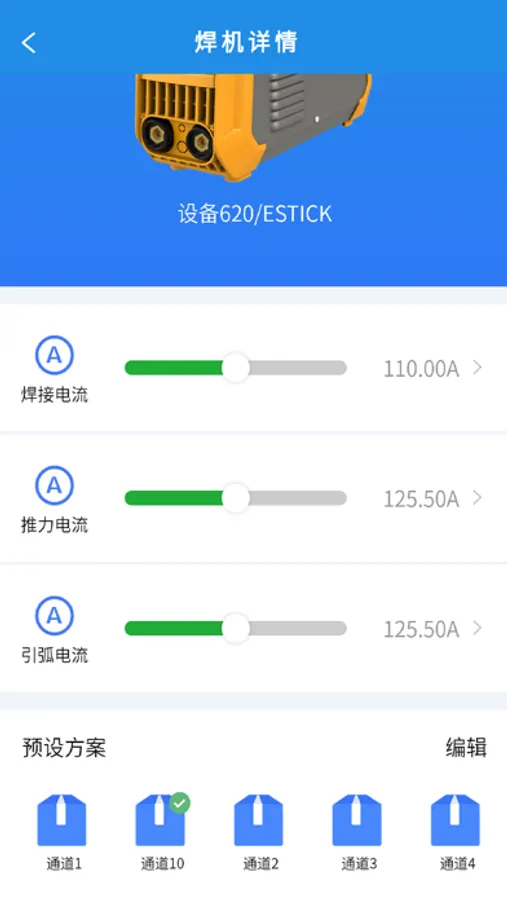 上海沪工,通过app打开蓝牙连接到焊机设备,可以对焊机进行操作。