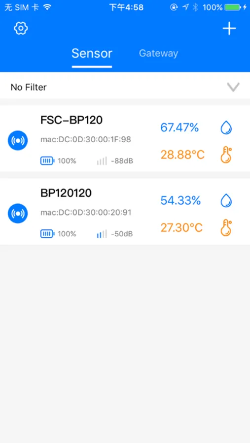 项目是开发一款适用于飞易通温度、湿度、网关的beacon APP,APP Sensor页面主要显示当前的设备名字,mac地址,温度,湿度,电量,信号强度,并且可以通过折线图查看历史数据;Gateway页面主要显示已添加的网关设备,显示名字,mac地址,信号强度,并且可以通过蓝牙扫瞄添加、编辑网关。