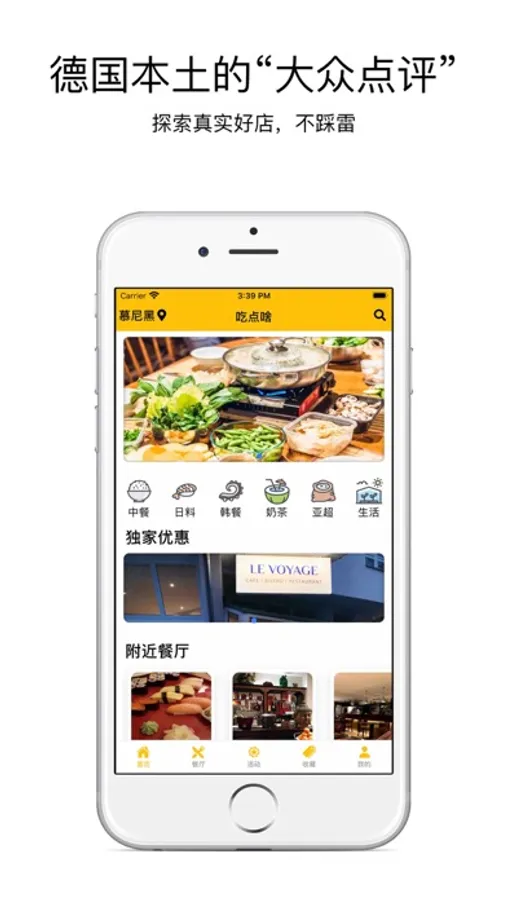 发现身边的美食,得知最新的美食资讯。引领娱乐导向,成为美食KOL。描绘德国最强美食地图。旅居德国,必备实用app。