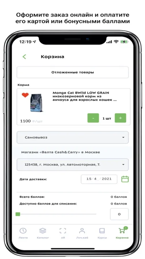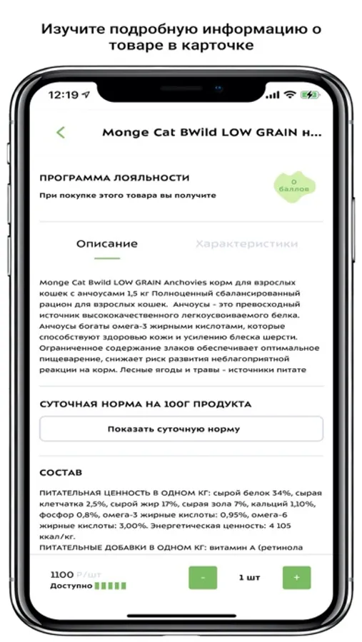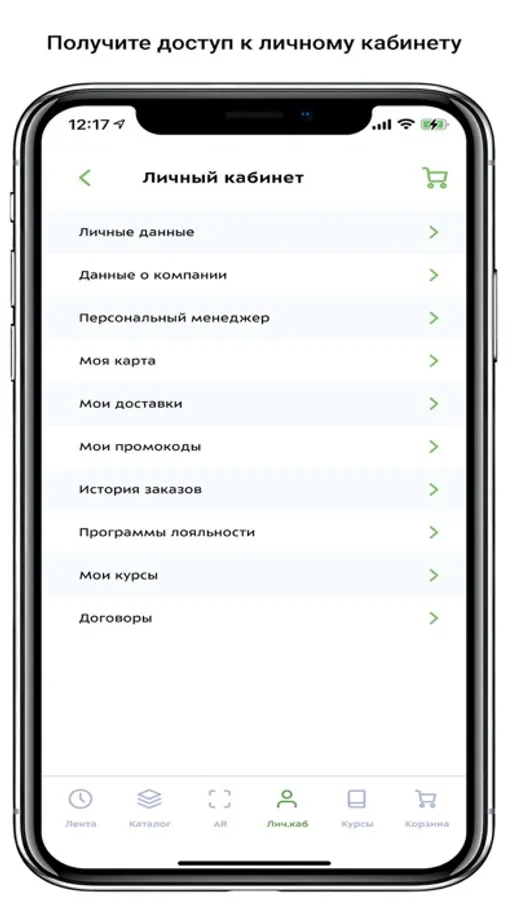 В приложении реализован личный кабинет пользователя, предоставлен доступ к выбору и закаказу товаров прямо из мобильного телефона.