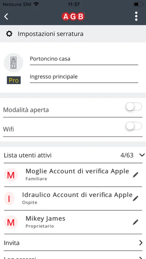 - Per i gli utenti con ruolo di proprietario/familiare l'utilizzo della chiave è possibile anche senza essere connessi, sempre mantenendo inalterata la sicurezza