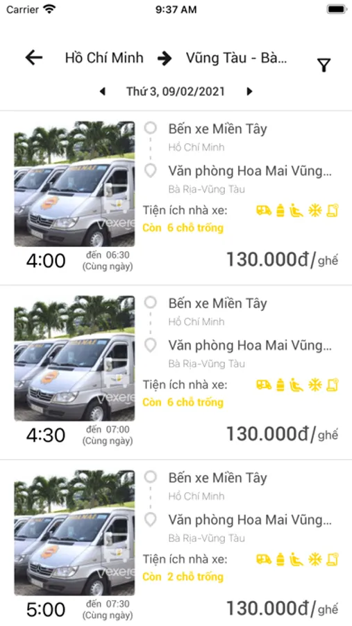 Xe Hoa Mai là ứng dụng đặt vé và tra cứu thông tin xe Hoa Mai trực tuyến đi tuyến Hồ Chí Minh - Vũng Tàu, mang lại trải nghiệm nhanh chóng và tiện lợi nhất từ việc đặt vé đến sử dụng dịch vụ vận chuyển hành khách. Xe Hoa Mai hân hạnh tạo dựng nên những giá trị mới cho dịch vụ vận chuyển hành khách cao cấp tuyến Hồ Chí Minh - Vũng Tàu với đội ngũ nhân viên chuyên nghiệp, giàu kinh nghiệm trong lĩnh vực vận tải hành khách và hệ thống xe cao cấp từ dòng Limousine đời mới nhất.