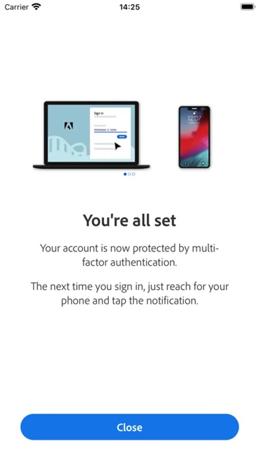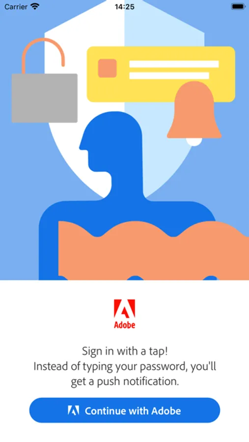 Use Adobe Account Access to sign in with a tap. Each time you need to sign in to your Adobe account, this app will receive a push notification. Approve it, and you're signed in! It's fast, convenient, and secure.